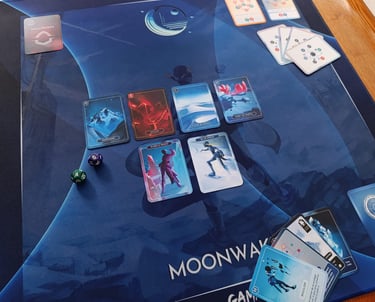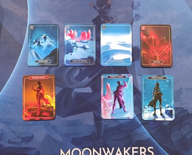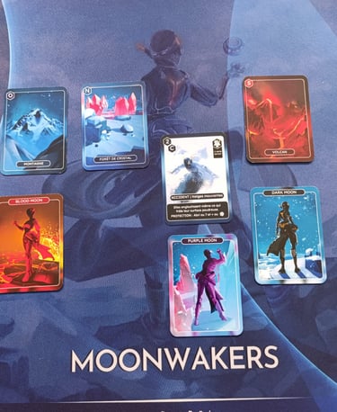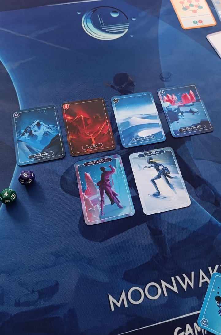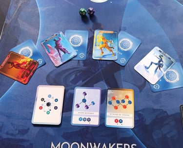 Moonwakers SEED est un jeu dans lequel il faut explorer une planète et collecter les éléments essentiels à la vie : Carbone (C), Hydrogène (H), Azote (N), Oxygène (O), Phosphore (P) et Soufre (S). Ils permettent d’obtenir des cartes COMBINAISON. L’objectif est d’atteindre le plus de points de combinaison. Moonwakers se joue de préférence de 2 à 4 joueurs·ses mais il est possible de jouer jusqu’à 6 personnes.