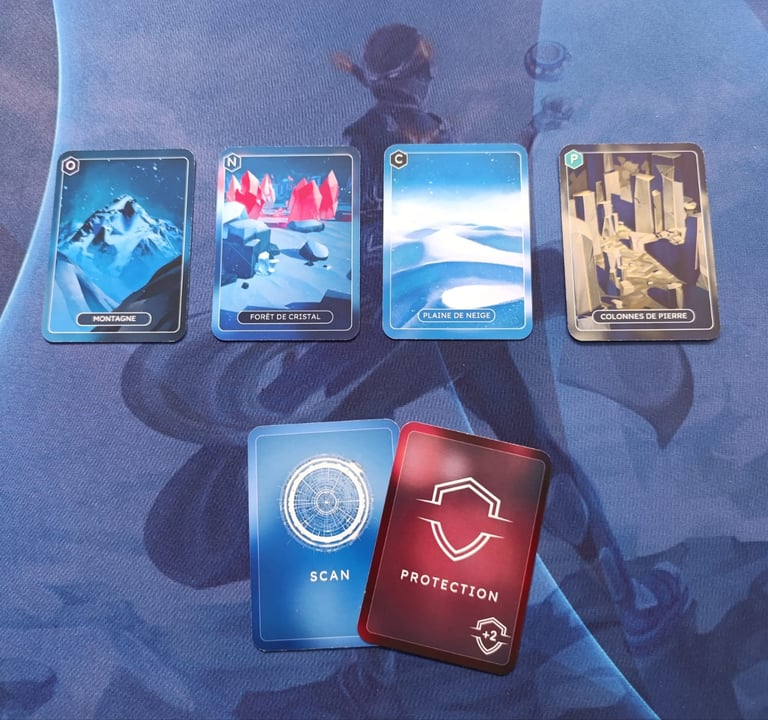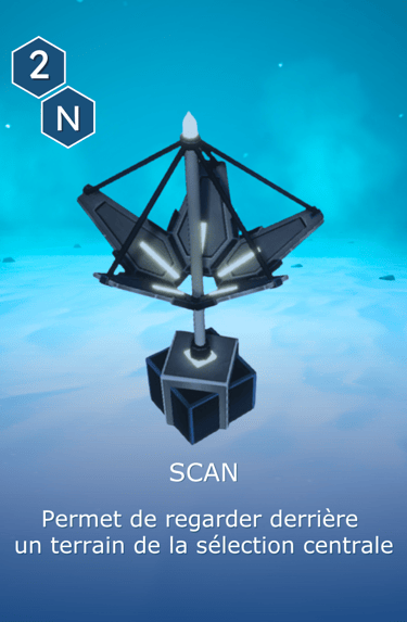 Les joueur·ses ayant préféré l’option SCAN peuvent regarder sous une seule des cartes TERRAIN posées sur la table (pas d’ordre défini). On peut regarder sous la même carte que ses voisin·es.