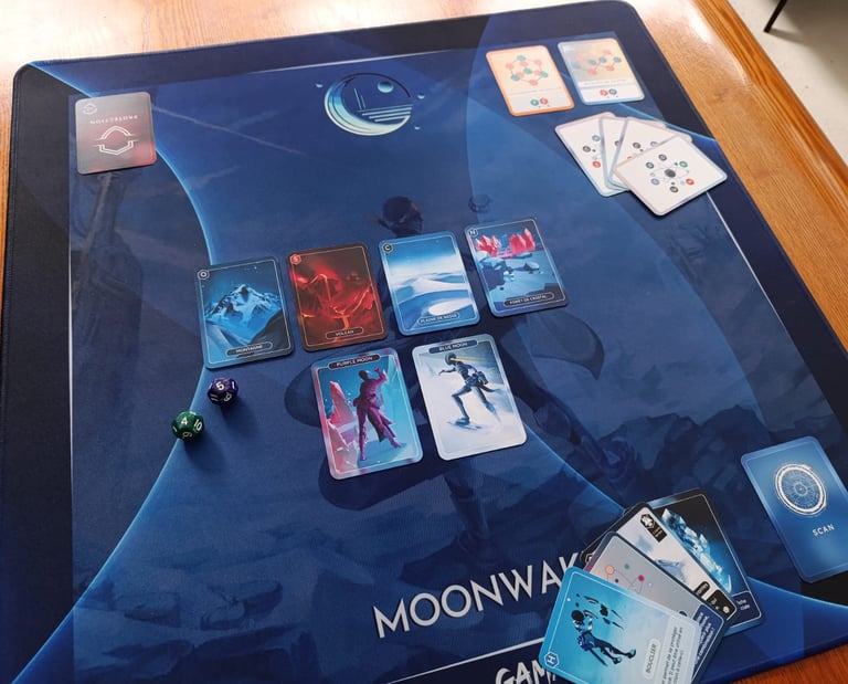 Moonwakers SEED is a game where you explore a planet and collect the essential elements for ligfe: Carbon (C), Hydrogen (H), Nitrogen (N), Oxygen (O), Phosphorus (P), and Sulfur (S). These elements allow you to obtain COMBINATION cards. The goal is to earn the highest number of combination points.